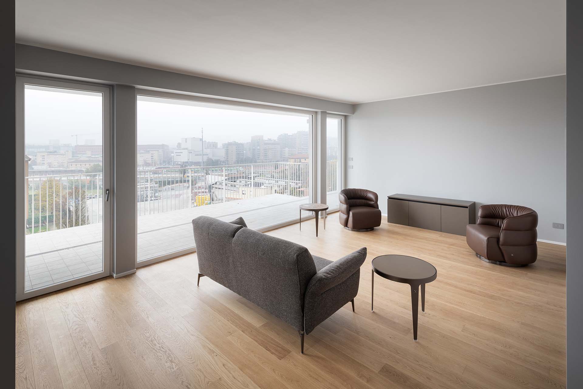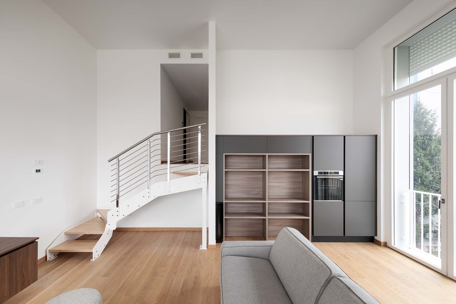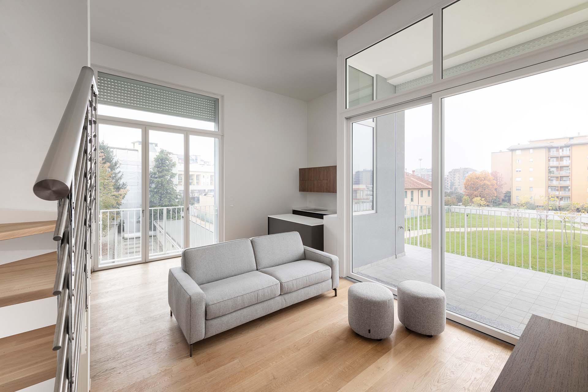 Spazio per te e per la tua famiglia. Diverse tipologie di trilocali, alcune delle quali con soffitti alti più di 4 mt e finestre a tutta altezza: luce e aria le protagoniste.