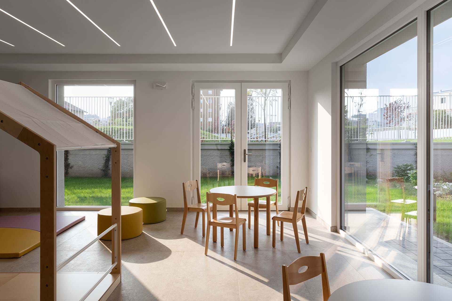 La sala feste al piano terra, circondata dal verde